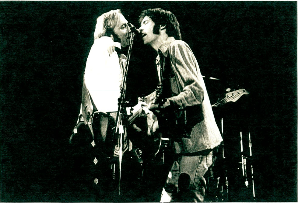 Stills and Young, July 4, 1976, Niagara Falls. Young walked out of the tour shortly thereafter, allegedly sending Stills a telegram that read “Dear Stephen, funny how some things that start spontaneously end that way. Eat a peach. Neil.” Stills soldiered on and finished the tour solo. (Photo by Brad Auerbach)
